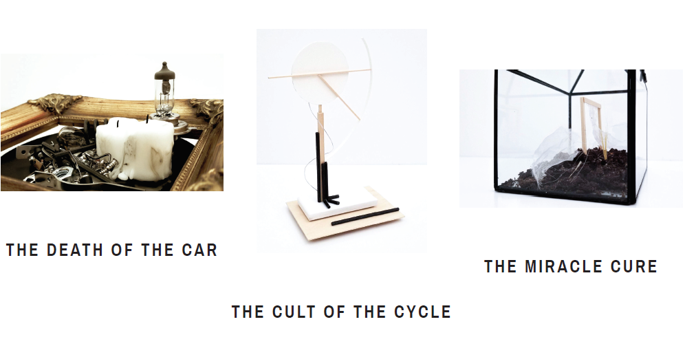 Conceptual development pointed toward three directions: The Death of the Car, The Cult of the Cycle, and the Miracle Cure.